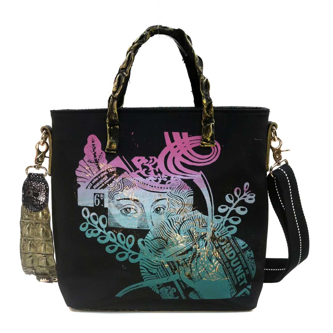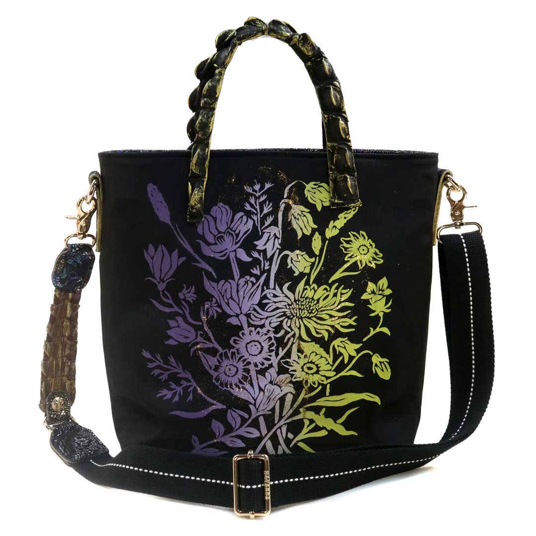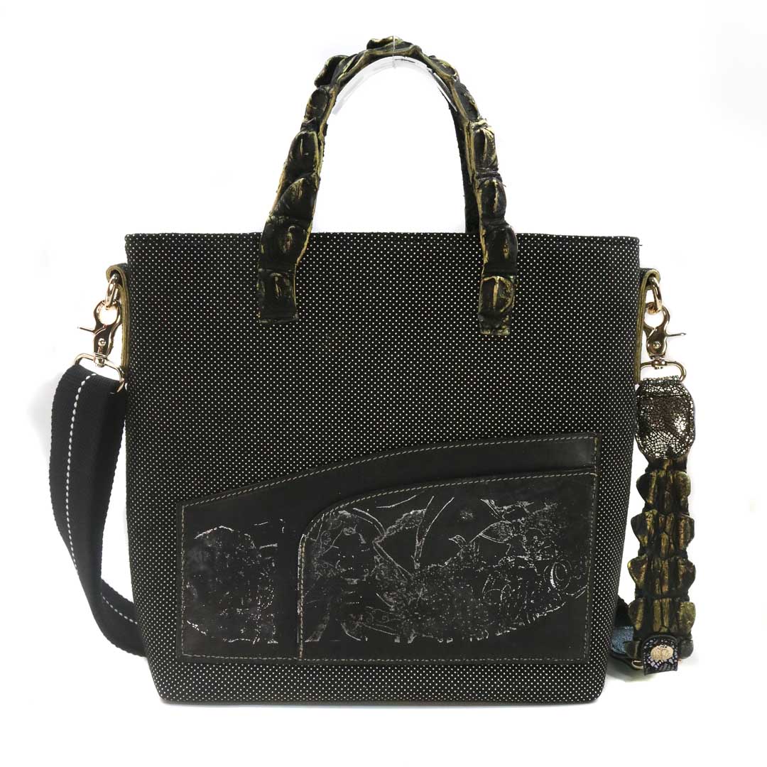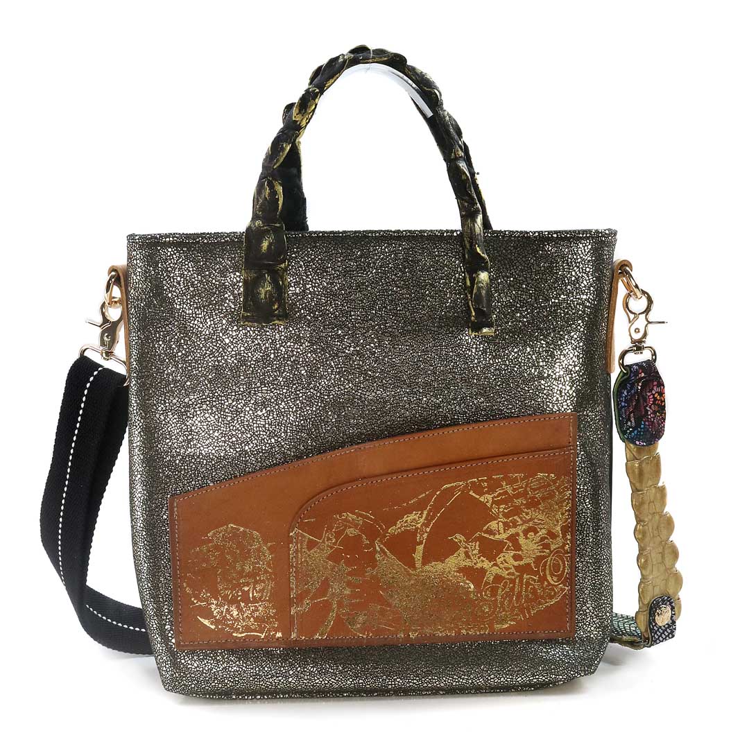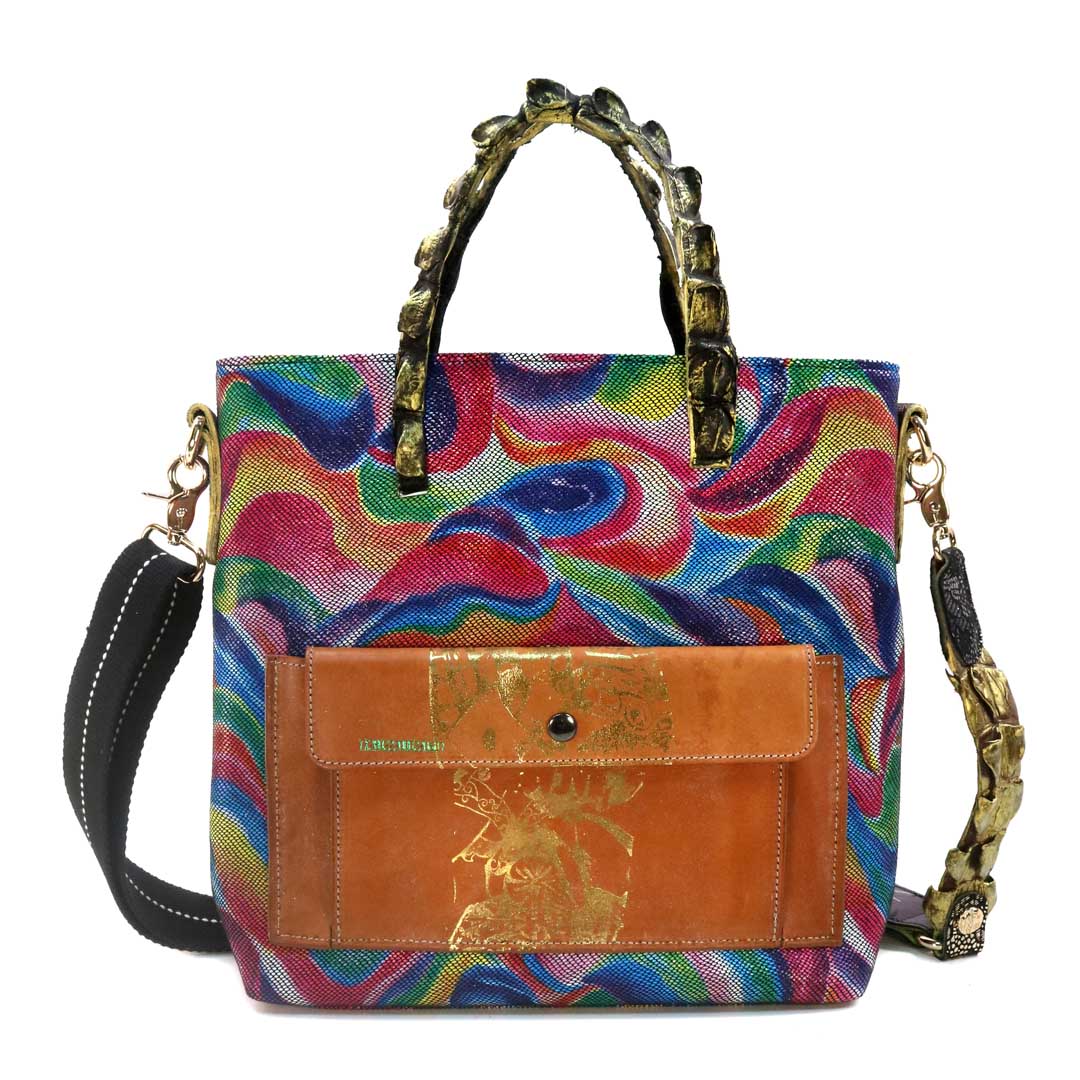商品簡介:伊艾拉 黃牛花毯皮+鴨巴甸+鱷魚脊提把+鱷魚脊帶織背織