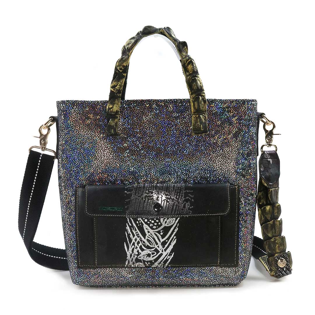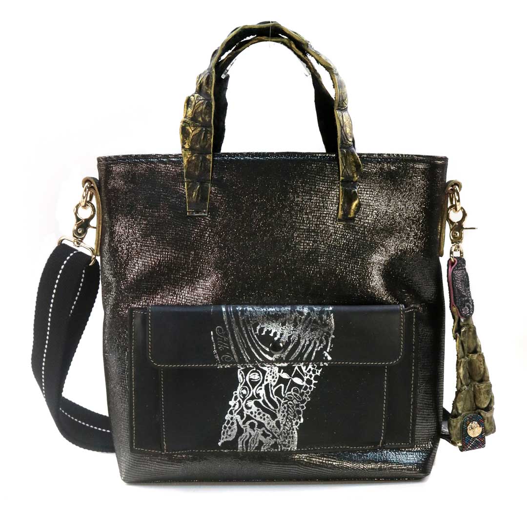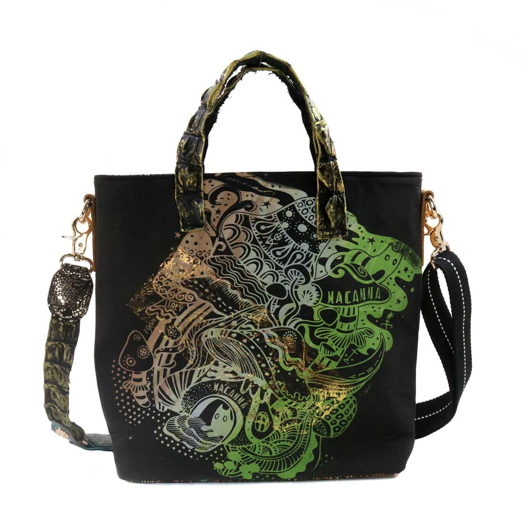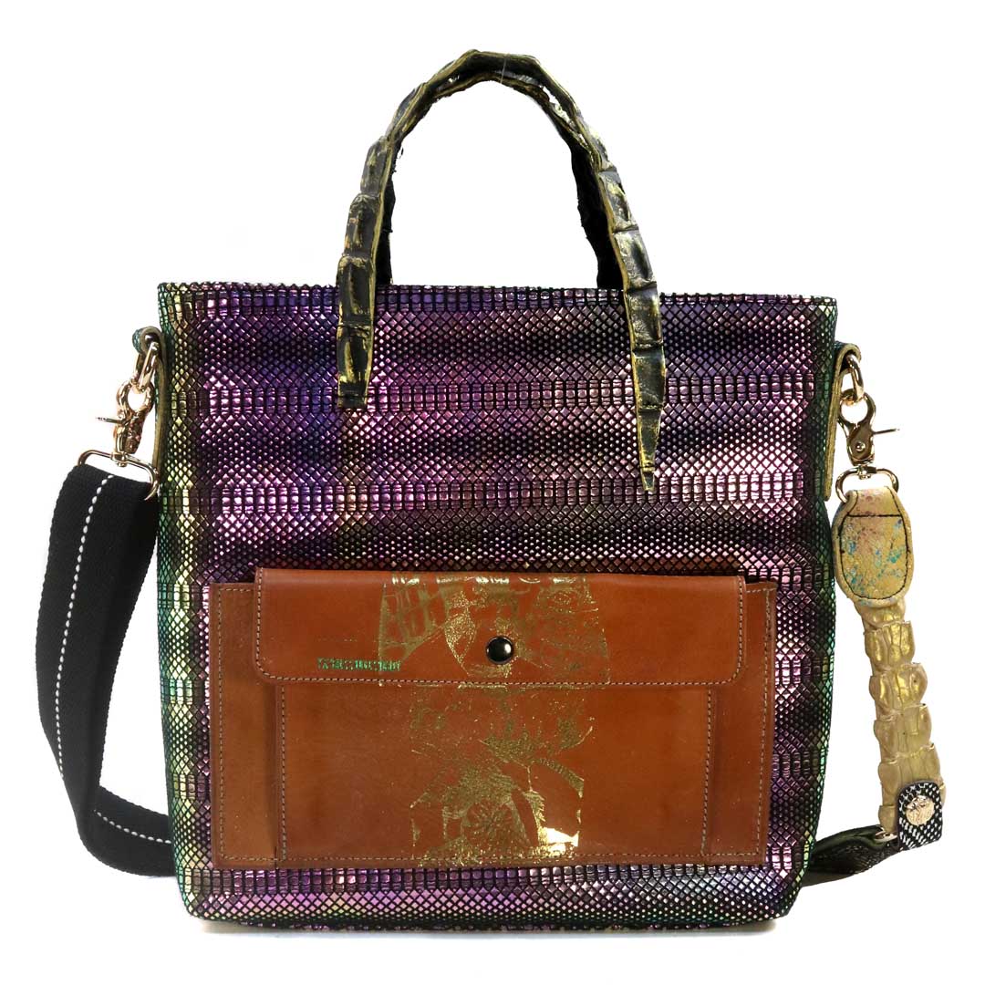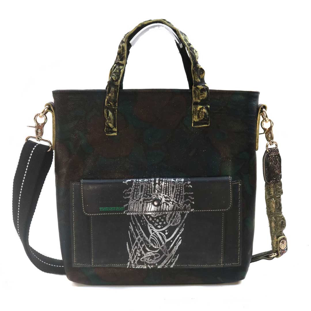 商品簡介:*尼可洛西摩埃斯河珍稀河域+鴨巴甸 *以特洛伊城 西摩埃斯河沿河河景 為設計藍圖,以各類珍稀皮為用材,以每個單一作品,一個包一幅畫,來創作 成就之。 *背帶:後背減壓背帶 *提帶:喬治亞洲 亞特蘭大 大西洋野生灣鱷 鱷魚背脊