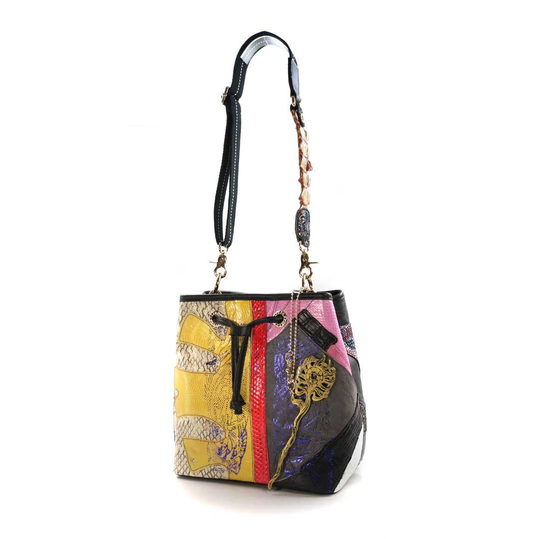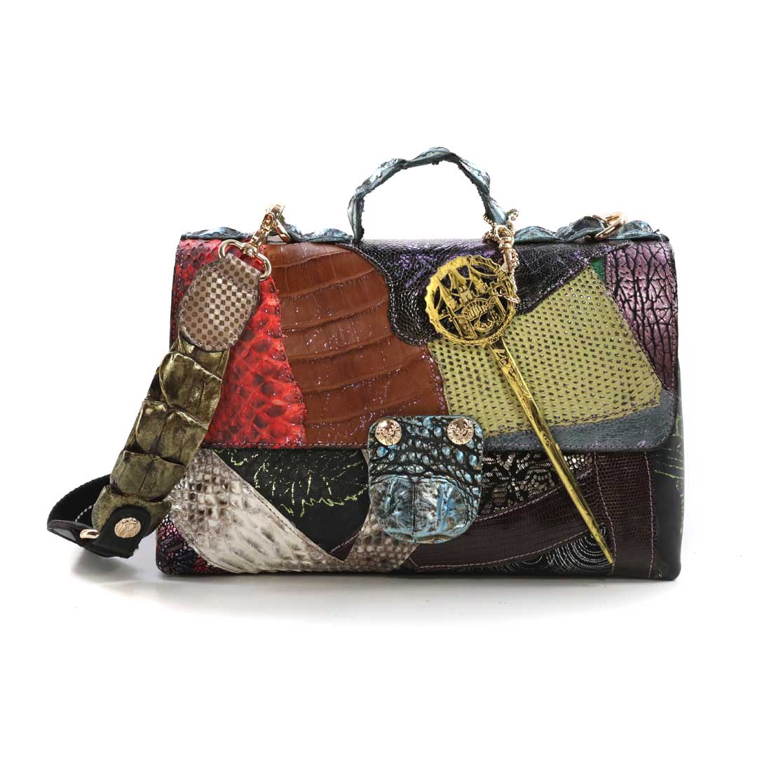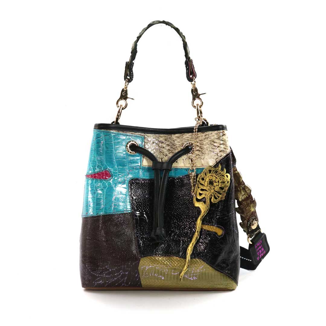 商品簡介:* 薩摩斯*以特洛伊城 西摩埃斯河沿河河景 為設計藍圖,以各類珍稀皮為用材,以每個單一作品,一個包一幅畫,來創作 成就之。 *背帶:鍍18K金鍊帶