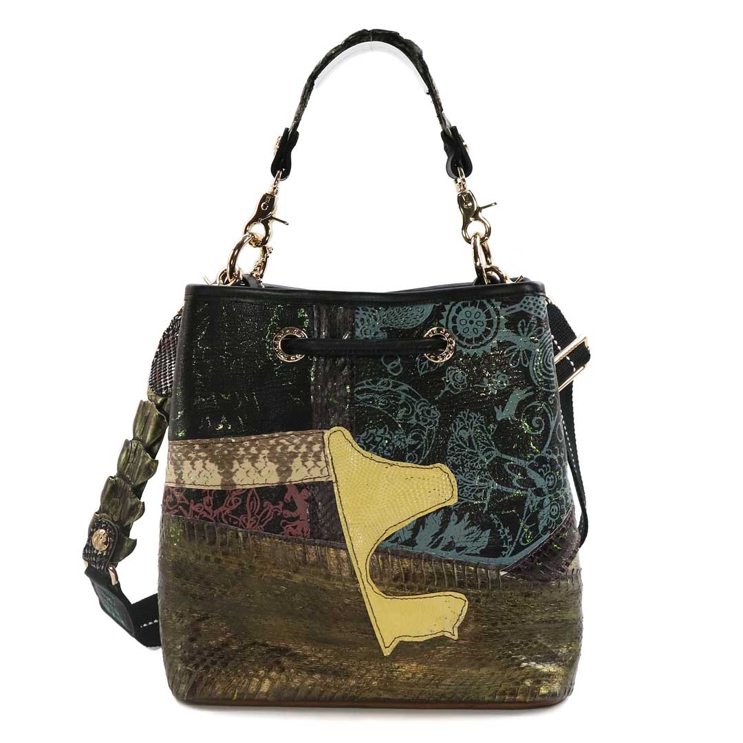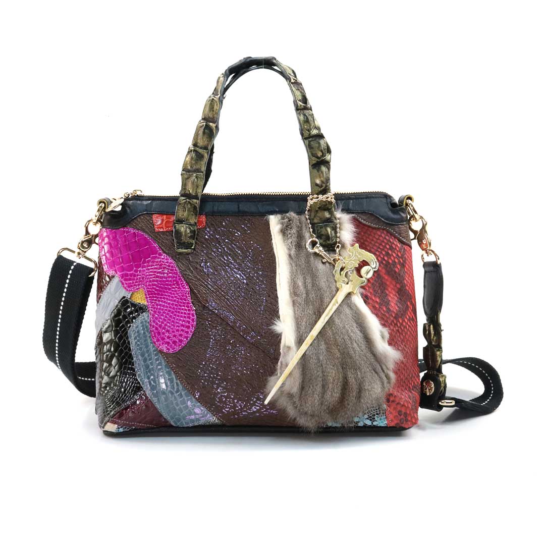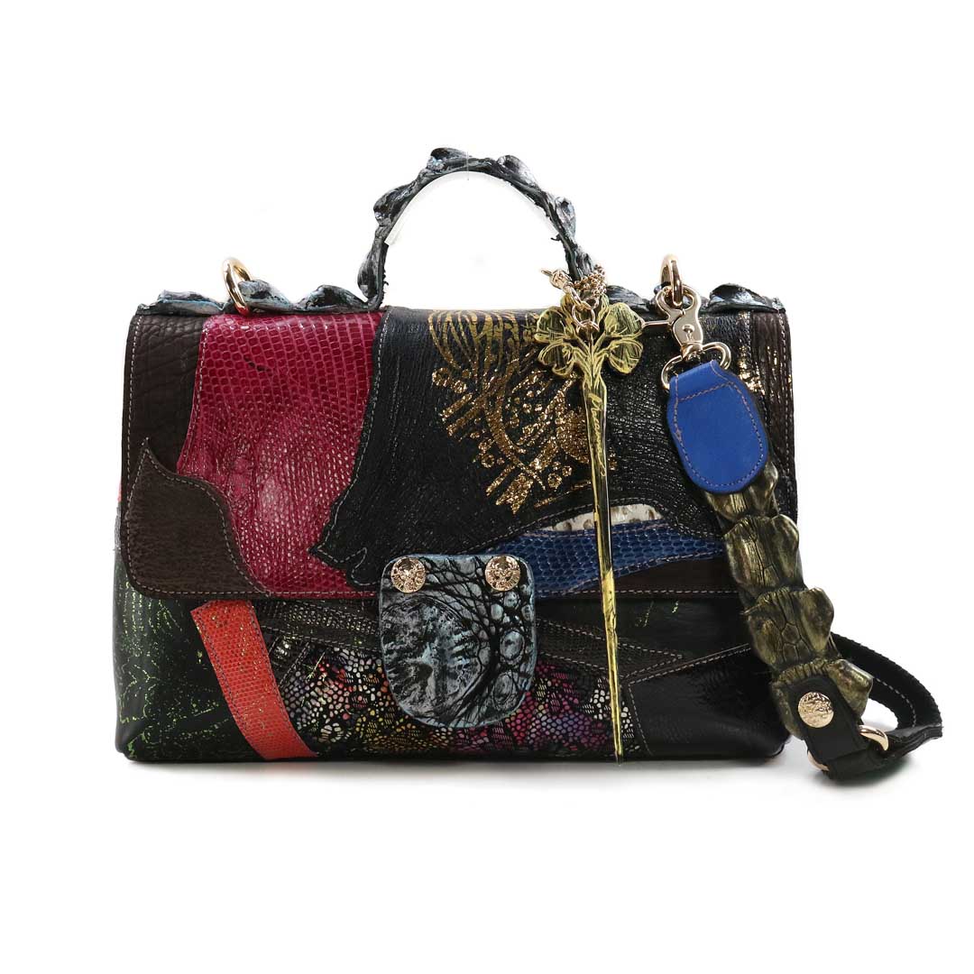商品簡介:* 薩摩斯*以特洛伊城 西摩埃斯河沿河河景 為設計藍圖,以各類珍稀皮為用材,以每個單一作品,一個包一幅畫,來創作 成就之。 *背帶:鍍18K金鍊帶