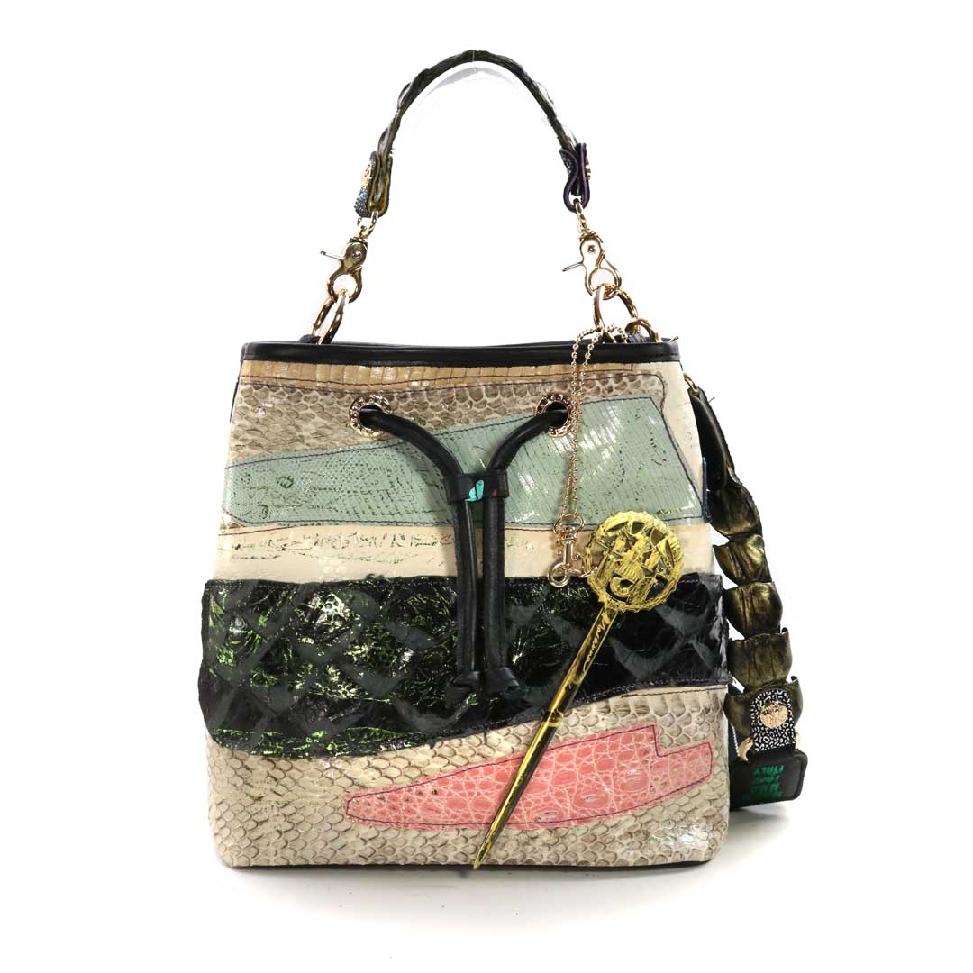 商品簡介:*尼可洛西摩埃斯河珍稀河域+鴨巴甸 *以特洛伊城 西摩埃斯河沿河河景 為設計藍圖,以各類珍稀皮為用材,以每個單一作品,一個包一幅畫,來創作 成就之。 *背帶:後背減壓背帶 *提帶:喬治亞洲 亞特蘭大 大西洋野生灣鱷 鱷魚背脊