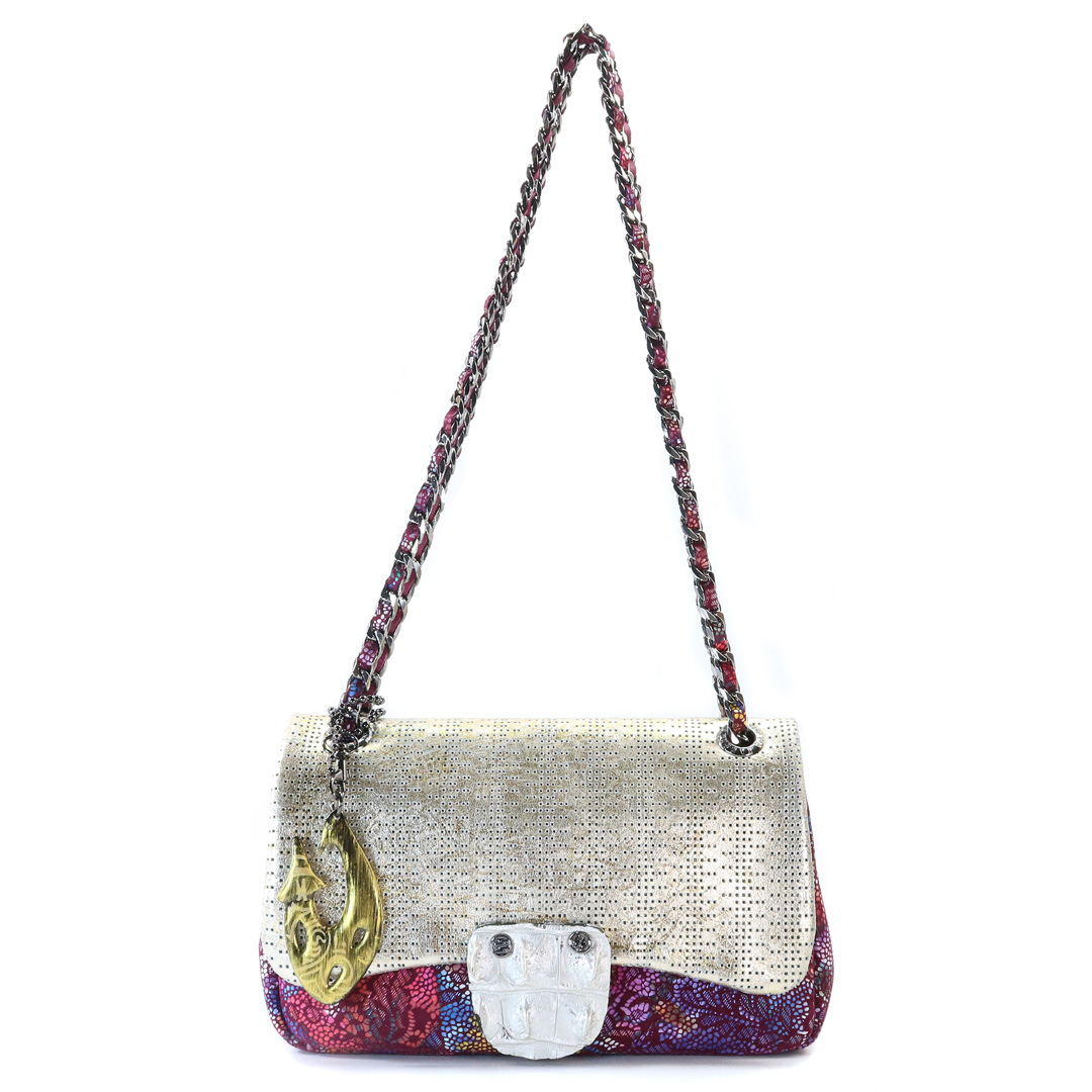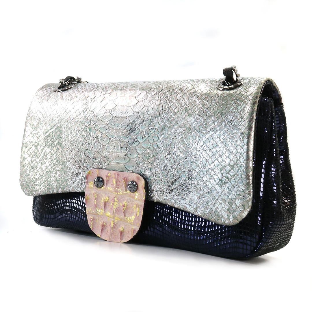 商品簡介:曼哥尼(中) ,科摩多龍、鱷魚皮、鯊魚皮、跳羚、糜羚、七大國黃牛皮,背帶:鱷魚背脊減壓背帶,吊飾:西伯利亞 犛牛角