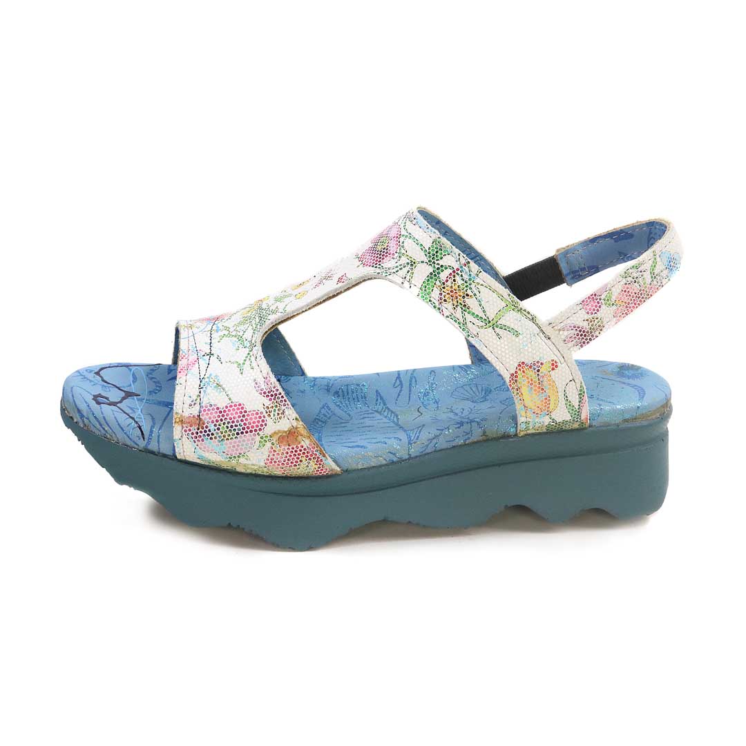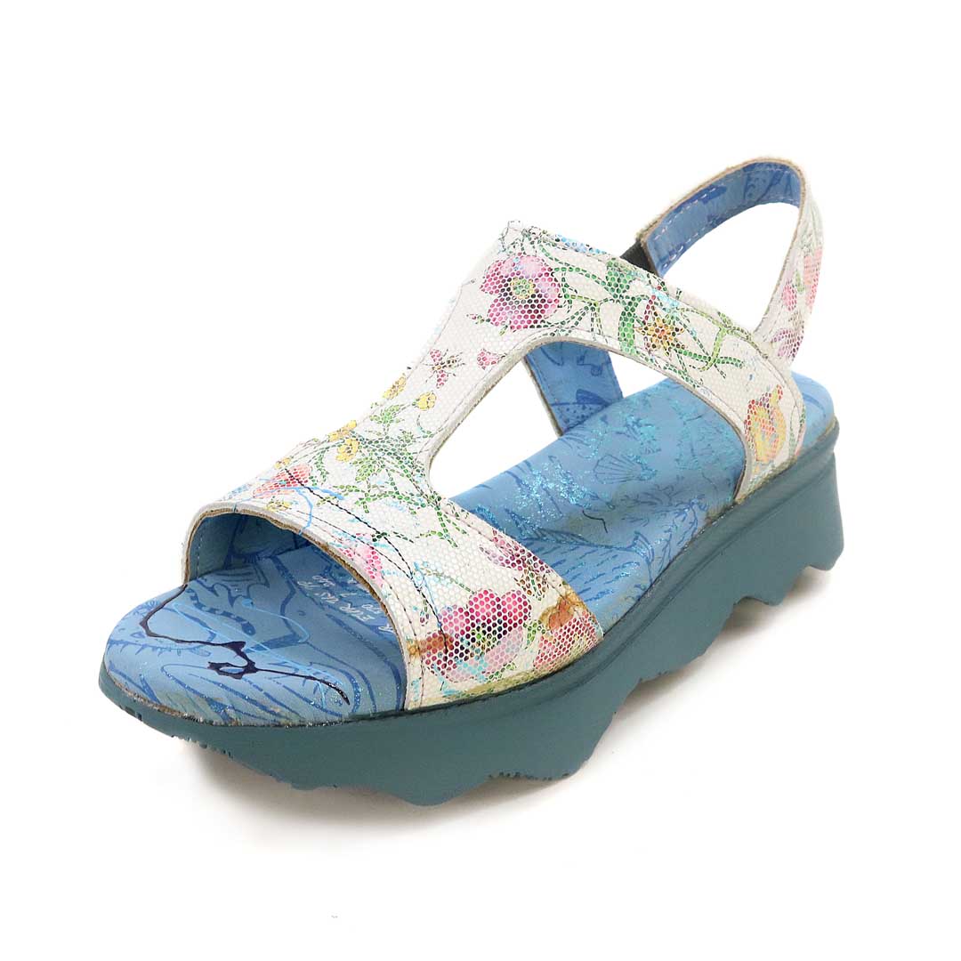 商品簡介:*托勒密 克里薩 *天然植物丹寧苯染,黃牛、山羊花毯自由配色,奧地利水晶鑽, 黃牛皮包鬆緊帶 *黃牛皮鞋墊內裡 *PU楔型跟氣墊底 *鉗幫鞋