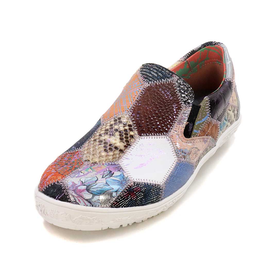 商品簡介:*卡奈克 墨湼斯 姍德李娜花毯 *致敬波洛克滴彩畫 *天然植物丹寧苯染,黃牛皮 *黃牛皮鞋墊內裡 *PU氣墊底 *鉗幫鞋