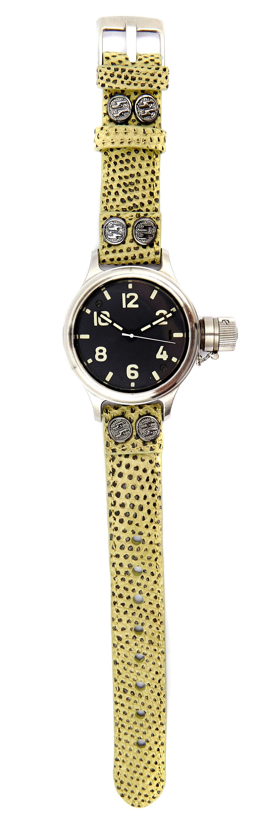 商品簡介:俄羅斯日拉鬥烏,軍錶獨立製造,二戰專製潛水艇錶廠,每只獨立製造編碼,防水700m水鬼錶{肯亞岩蟒皮}